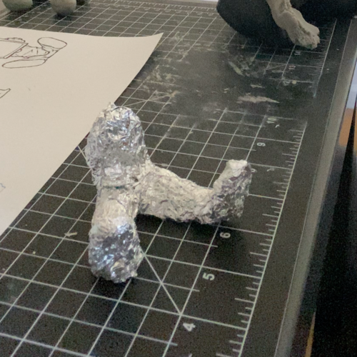Hand sculpted using a 2 part epoxy clay. Starting this piece, i used a wire and aluminum foil base and started adding the clay right on top. Once it air dried, i wet sanded to smooth the surfaces. The process was pretty straight forward.